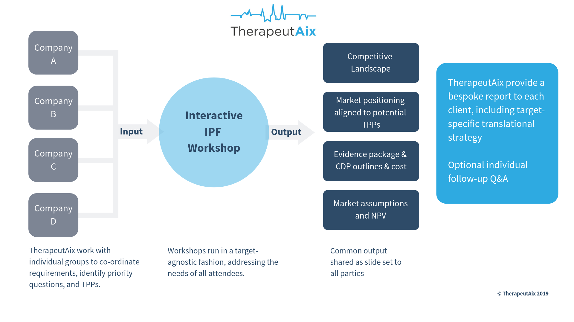 We have also developed a new workshop format, which is a crowd-funded approach to make ‘big pharma’-like assessments and planning available to small biotech companies and similar organisations at an affordable cost. These workshops include, for example, indication-specific competitive and commercial analysis as well as costed and timed clinical development scenarios. We describe this approach in more detail here. Please get in touch if you are interested to learn more!